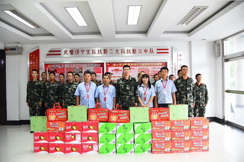 7月31日,FUN乐天使官方网站开展“军爱民、民拥军、军民鱼水一家亲”军民共建活动,党委副书记孙长军一行4人到武警济宁支队执勤二大队执勤三中队和微山县消防救援大队慰问奋战在一线的官兵,为他们送去了日常生活用品及防暑用品,并向他们致以亲切的问候和节日的祝福。