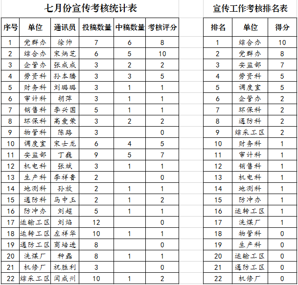 2020年7月份各单位投稿中稿情况公示