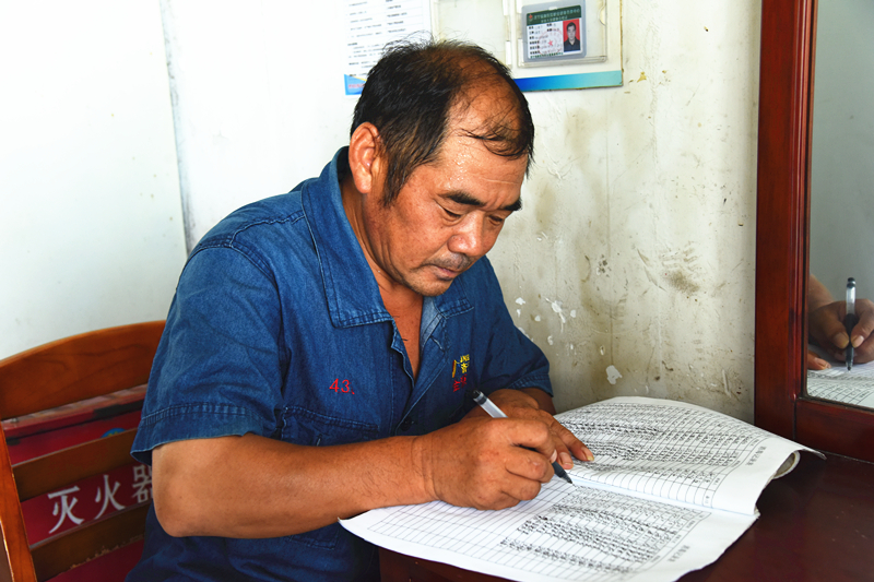 近半百的年纪,王绪千却与相似年龄的职工不一样。在闲暇的时候,他总是会抱着一本笔记本,学习煤矿的新制度和上级的新政策。