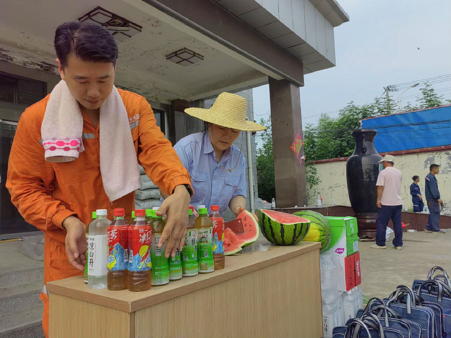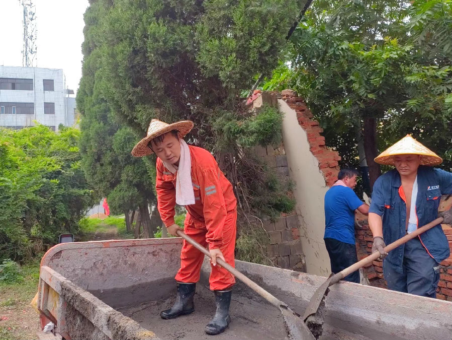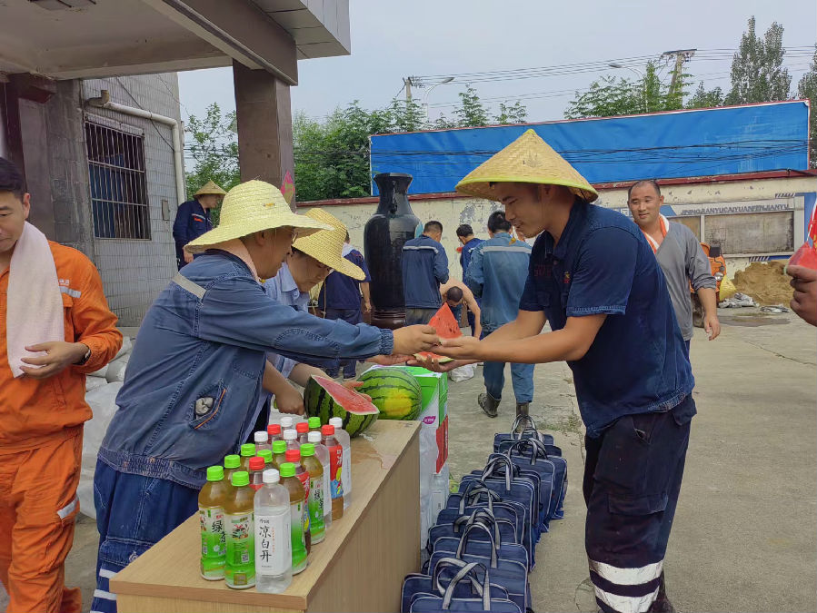 7月的持续降雨,使蔡园煤矿年久失修的西墙倒塌,长度达32米,损坏墙体面积约一百平方米。FUN乐天使官方网站党委迅速组建“党员先锋队”,发动党员干部职工第一时间奔赴蔡园煤矿,重砌倒塌墙体。同时,准备了毛巾、矿泉水、绿茶、西瓜、绿豆汤等降暑用品和藿香正气水等防暑降温药物,并在施工现场进行了“送清凉”活动。