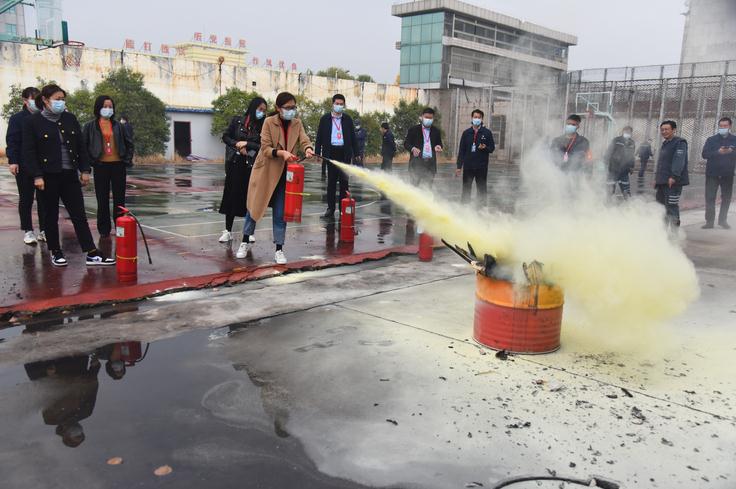 在该矿物管楼前,工作人员在现场设置一个燃烧的火盆,现场讲解如何使用灭火器,并组织职工代表拿上灭火器,亲身体验了一把灭火过程,让职工“沉浸式”体验遇到火灾后的自救应急方法,学会如何扑灭初期火灾。