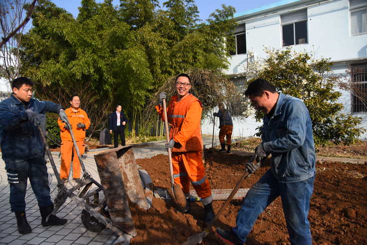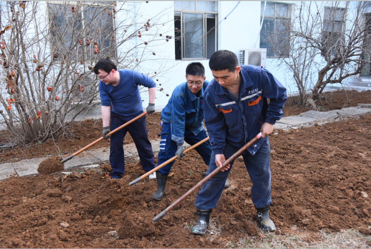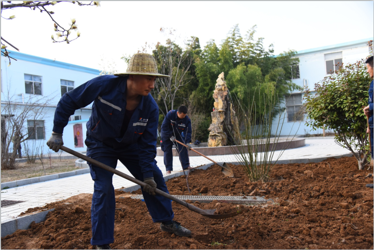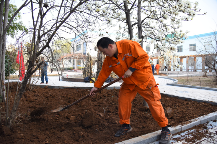 早上9点,一到植树现场,大家便投入到紧张的劳动中,撸起袖子忙碌起来,挥锹铲土、扶直苗木、培土围堰、提水浇灌,有条不素地完成每道工序,它们分工协作、互相配合,欢快的志愿者们奔忙于各个绿化角落,一个个忙碌的身影成为矿区一道美丽的风景线。