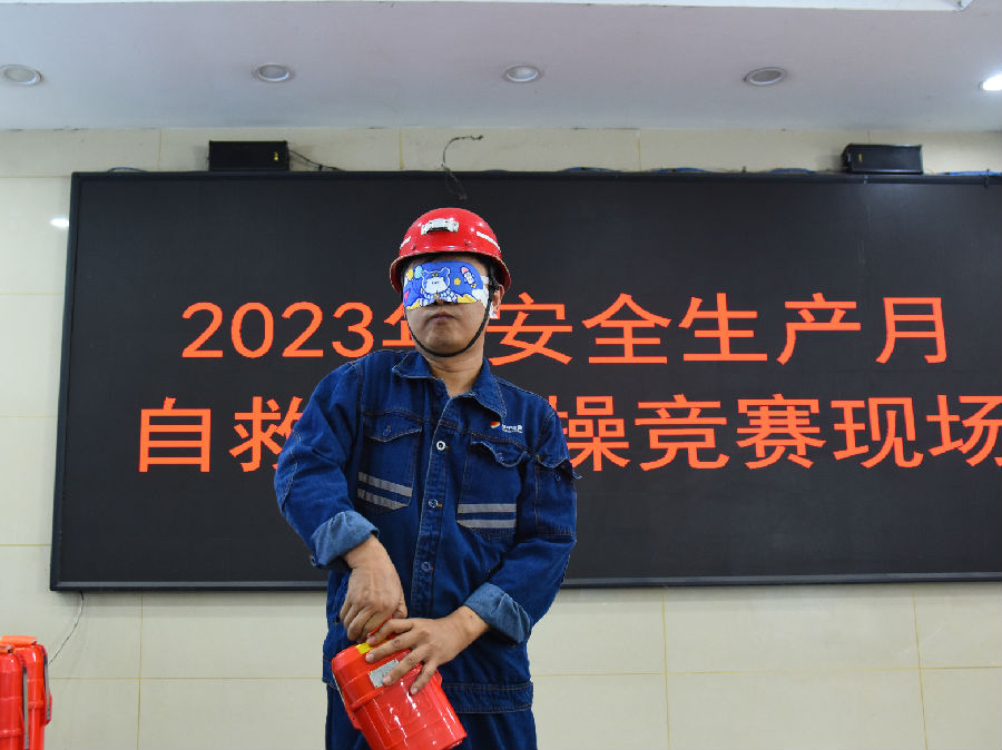 经前期选拔,5支代表队的15名参赛选手脱颖而出,比赛中,他们佩戴眼罩沉着应战,通过对井下自救器基本知识、结构原理和操作流程的熟悉程度,均有效完成了规定动作。