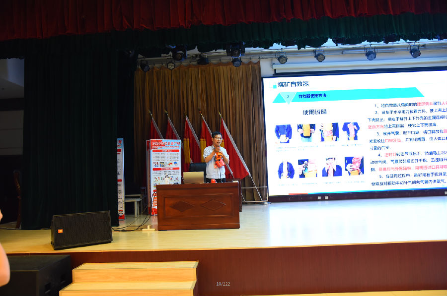 同时,组织各区队、科室全体下井人员开展自救器实操全员过关活动,分六组开展现场佩戴自救器考核,经考核,全体井下作业人员均在30秒内完成自救器佩戴,达到了“全员过关”的目标。