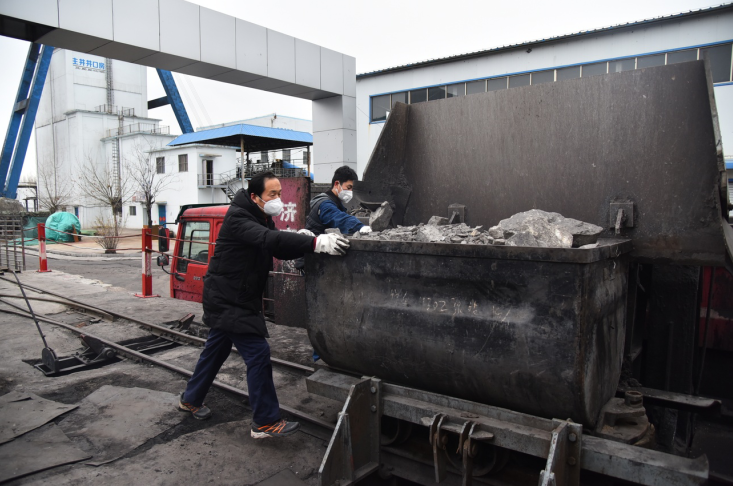 2月5日上午寒风凛冽,机电副矿长刘金伟带领值守部门负责人历经2个多小时,对副井口西车场50多辆矿车矸石进行了清运。
