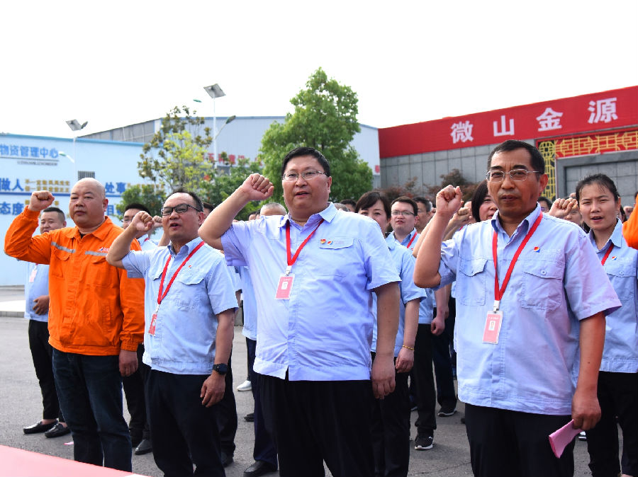 “我是光荣的金源人!我郑重宣誓,遵守安全法规,履行安全义务,坚决杜绝‘三违’,做安全放心人……”庄严的宣誓声响彻整个矿区。