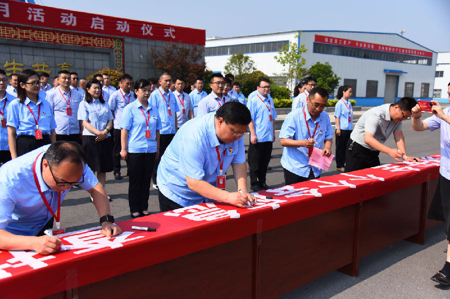 “为了矿井长治久安,为了集团安全发展,为了万家灯火团圆,我庄严宣誓:严守安全红线,杜绝违章作业……”最后,在安全总监徐明武的带领下,全体人员举起右手庄严宣誓,铿锵有力的誓言响彻矿区。随后,干部职工纷纷在“人人讲安全、个个会应急-查找身边安全隐患”主题条幅上郑重签名,写下了安全寄语和安全承诺。